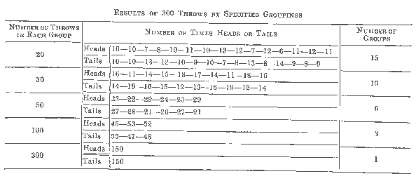 undertaken by the writer. An ordinary copper cent was flipped three hundred