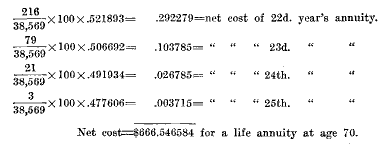 The temporary annuity at age 70, therefore, will cost net, $568.94, which