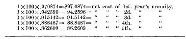 etc., by the amount of the annuity of $100, discounted respectively, two,