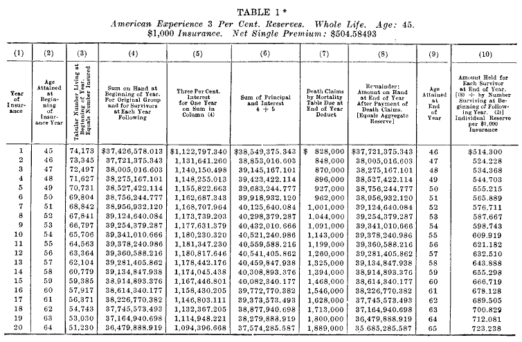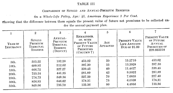 annual premium reserve is but $102.20, a difference of $453.02. Likewise